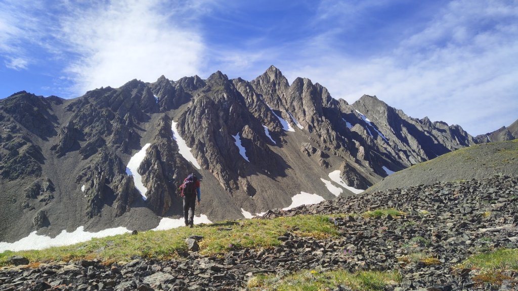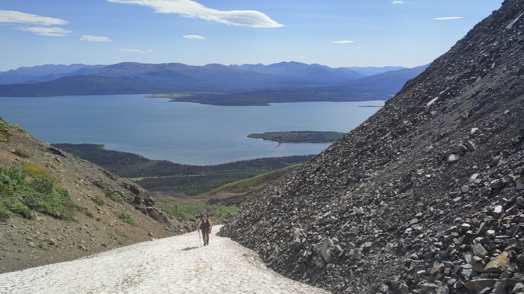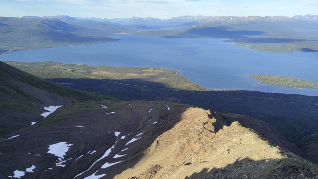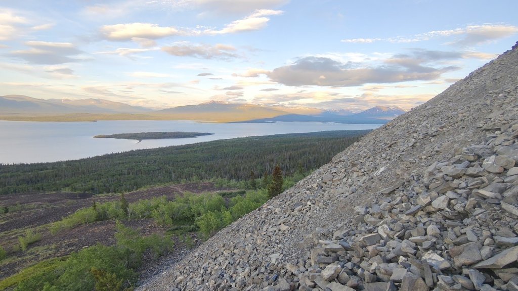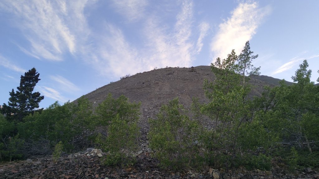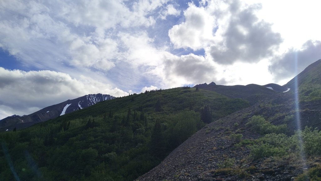 Come the end of June, I was out in Klukshu attending the Council of Yukon First Nations General Assembly as part of my work. Of course, I was still training for my trip and couldn’t stop hiking for a few days, so I figured I’d take the time to do some hiking in a new place at least one of the evenings. I had a few possible options picked out, with the Rock Glacier trail (part of Kluane NP) being one of them. When driving out there, I noticed some peaks, poking through the space in the trees. I had seen these on prior drives and made a mental note to grab my binoculars and take a look at these one day but lo and behold, they were right above the Rock Glacier trail. Looking at a map I figured I could easily go beyond the trail to add some extra elevation for training purposes and get a closer look at these peaks for any potential future scrambling trips. “Who knows, maybe I’ll even climb one of them?” I said to myself, jokingly.