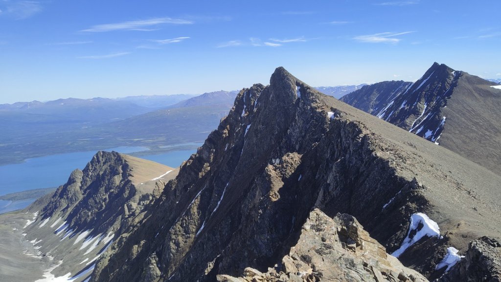 The jagged and beautiful peak further south with some alpine flowers and the deep gulch separating us. Pictures don’t do the scale justice.