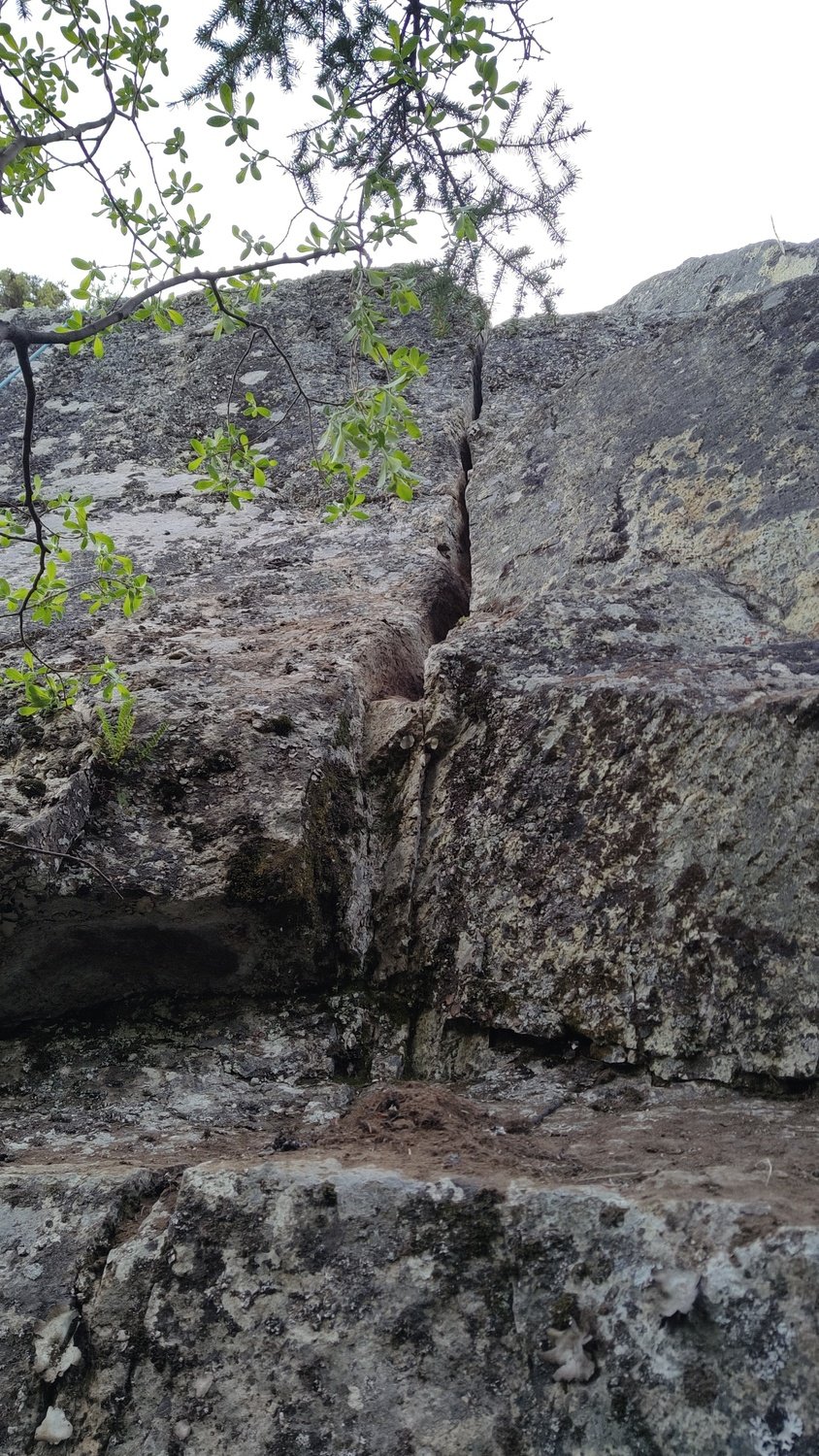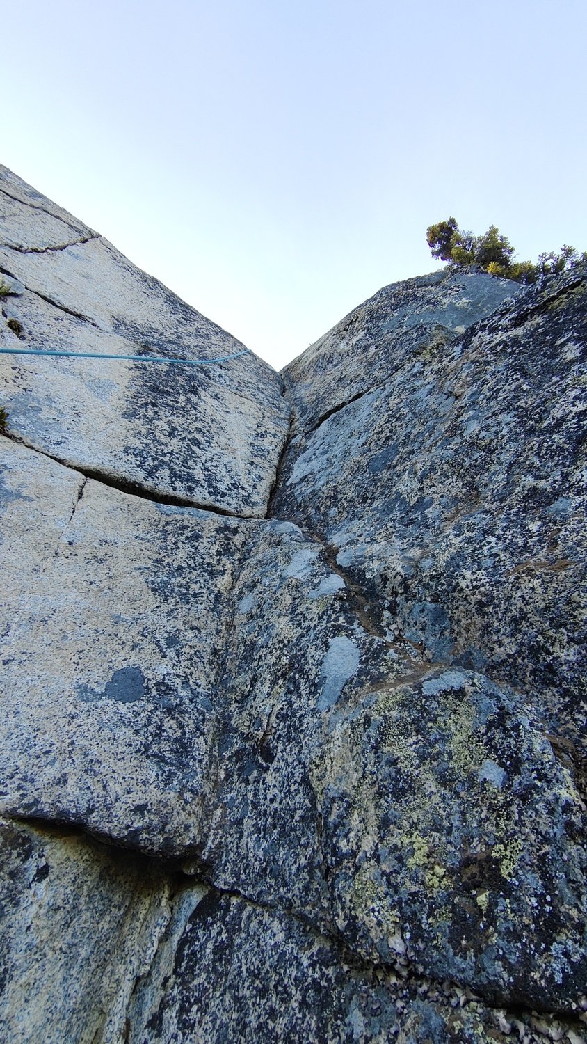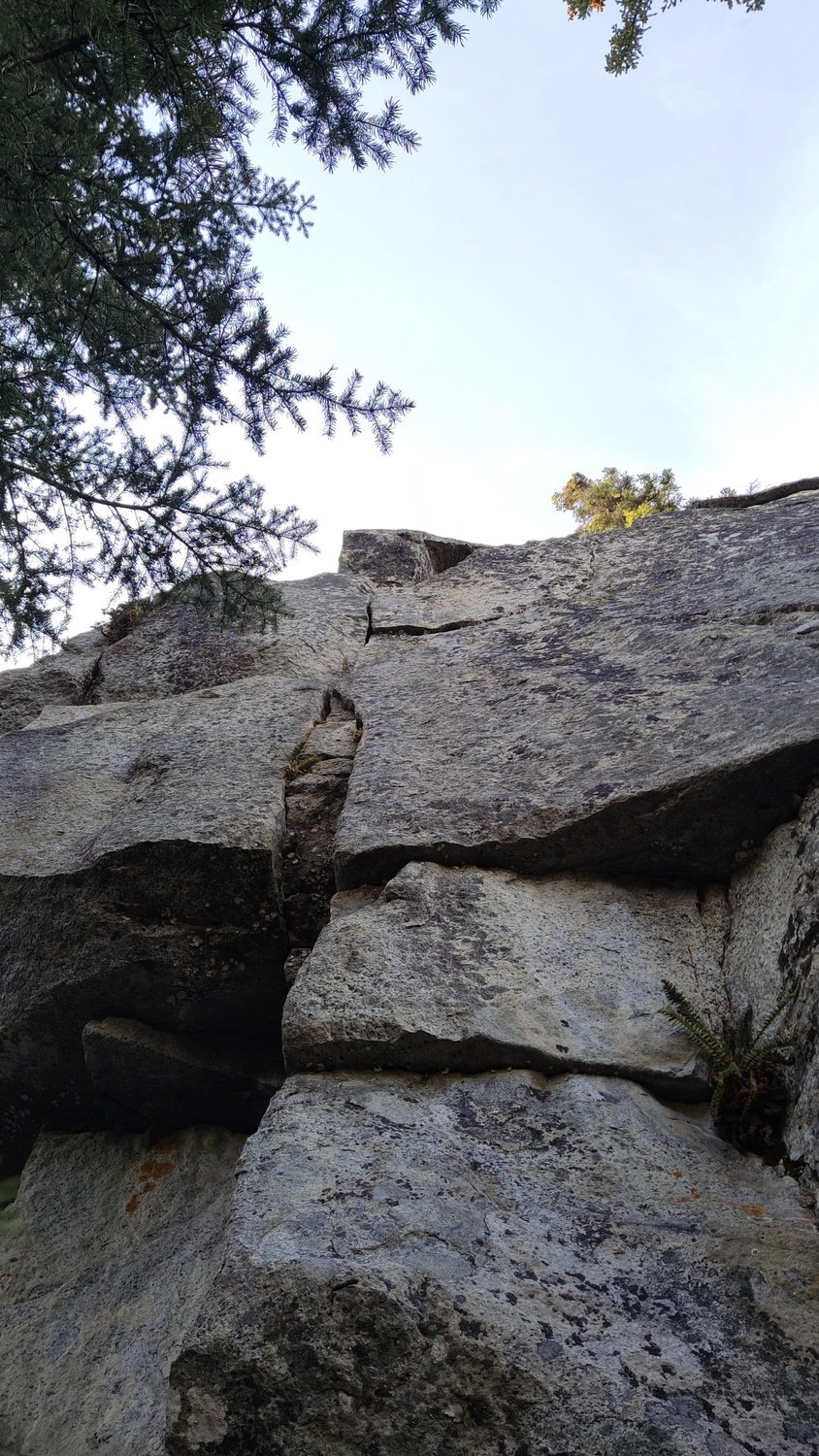- This is a new addition (as far as we know) to the crag. Rob and I established it in Summer 2023 after asking around to see if it had been done prior. From below it looks like mostly a closed off seam, but when you get up there it opens up just enough for perfect fingerjams in bomber constrictions, which also happen to be fantastic spots for nut placements.