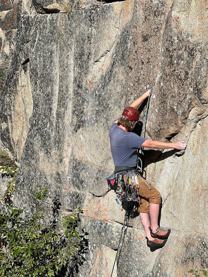 Just a general beginner trad tip: embrace headpointing! I do this all the time, still, but it’s particularly helpful in learning to trust your gear when starting out. Climb a route on top rope, placing gear as you go as if you were leading, then when being lowered take a sling and clip it to the piece. Next, bounce on it with your full weight. Napkin math has shown this will produce forces equivalent to a small lead fall because of the static nature of slings. It may not guarantee you that it will hold a giant whip but it does give you some initial feedback on your placements. Nowadays, if I’m headpointing I never really bounce test the pieces I place unless I feel they are suspect, as it can cause wear. But starting out, it’s not a bad idea to test them all.
