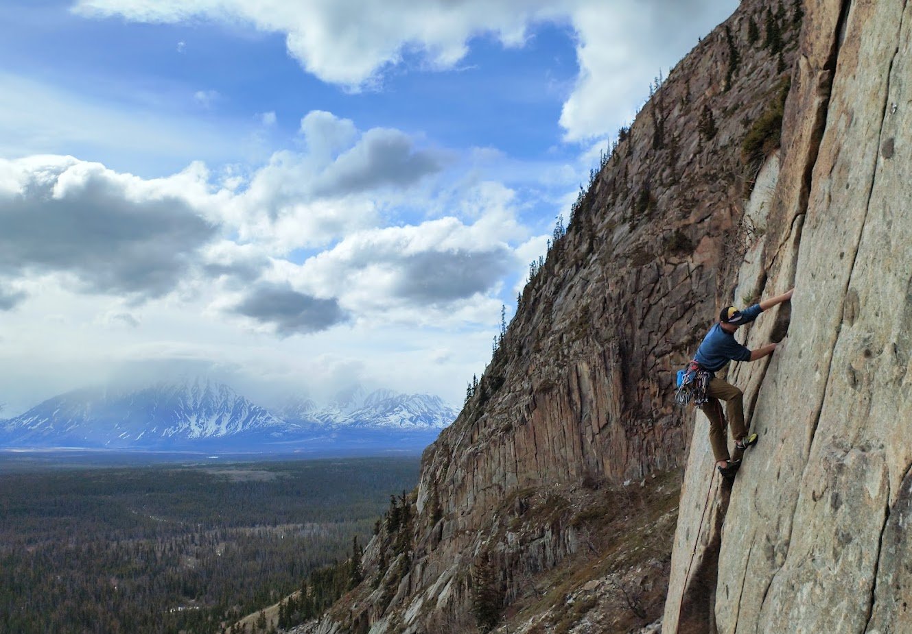 - A really fantastic climb but as per the norm for the Yukon, the start can feel a bit spicy. Climbing the crack proper at the start can be difficult and the pro is tricky. I’ve watched a buddy deck here. Thankfully, it is fairly low to the ground and he was fine. Otherwise, you can head right up a flake with no pro and traverse in. Once you’re established in the crack, the pro is bomber though.